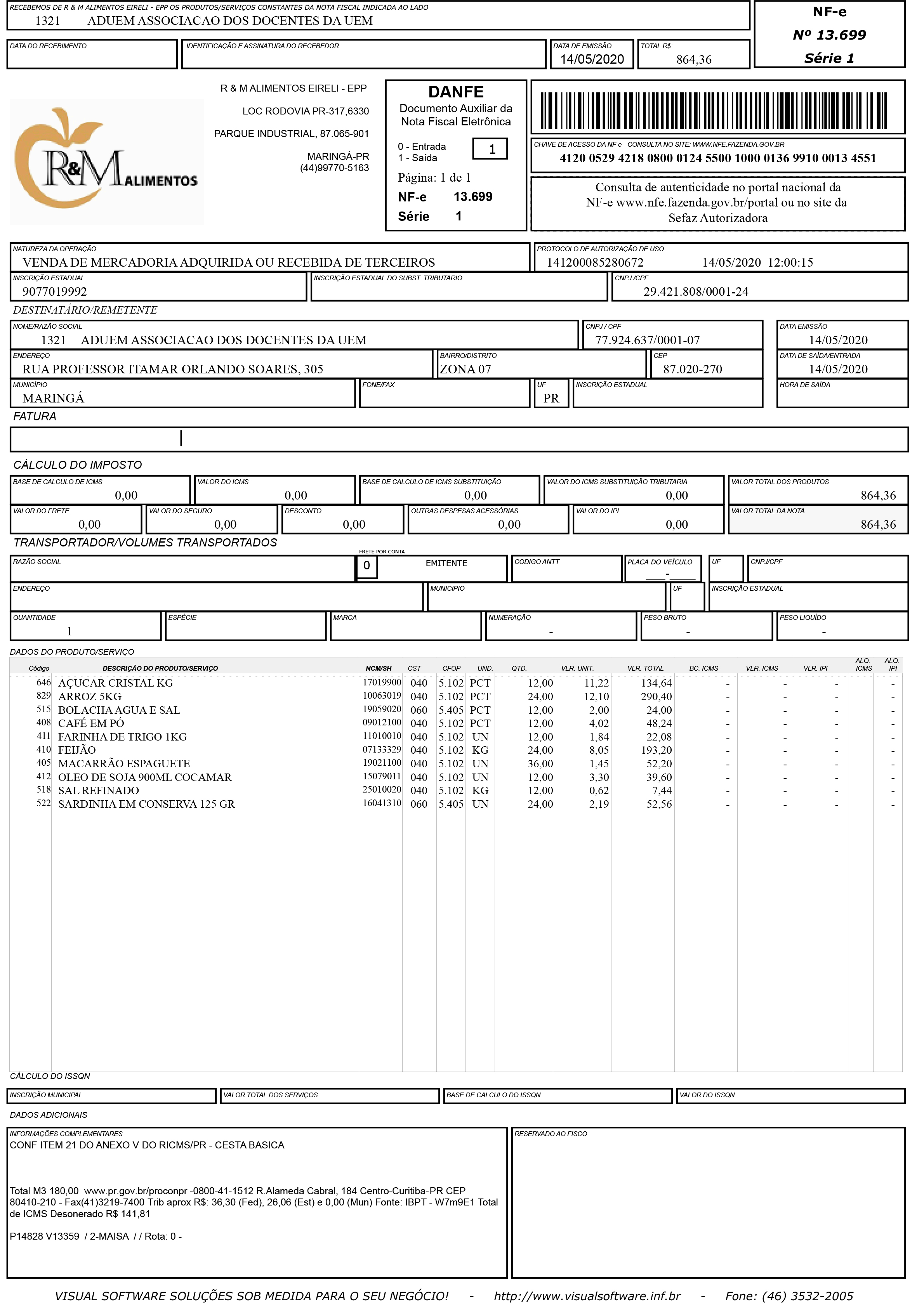 Por isso, em solidariedade a esses alunos, a Aduem doou, nesta terça-feira, doze cestas básicas. As cestas foram entregues pelo funcionário da Aduem, Hermínio Rodrigo Costa (Neto) e pelo motorista da universidade, João Luiz Suter.